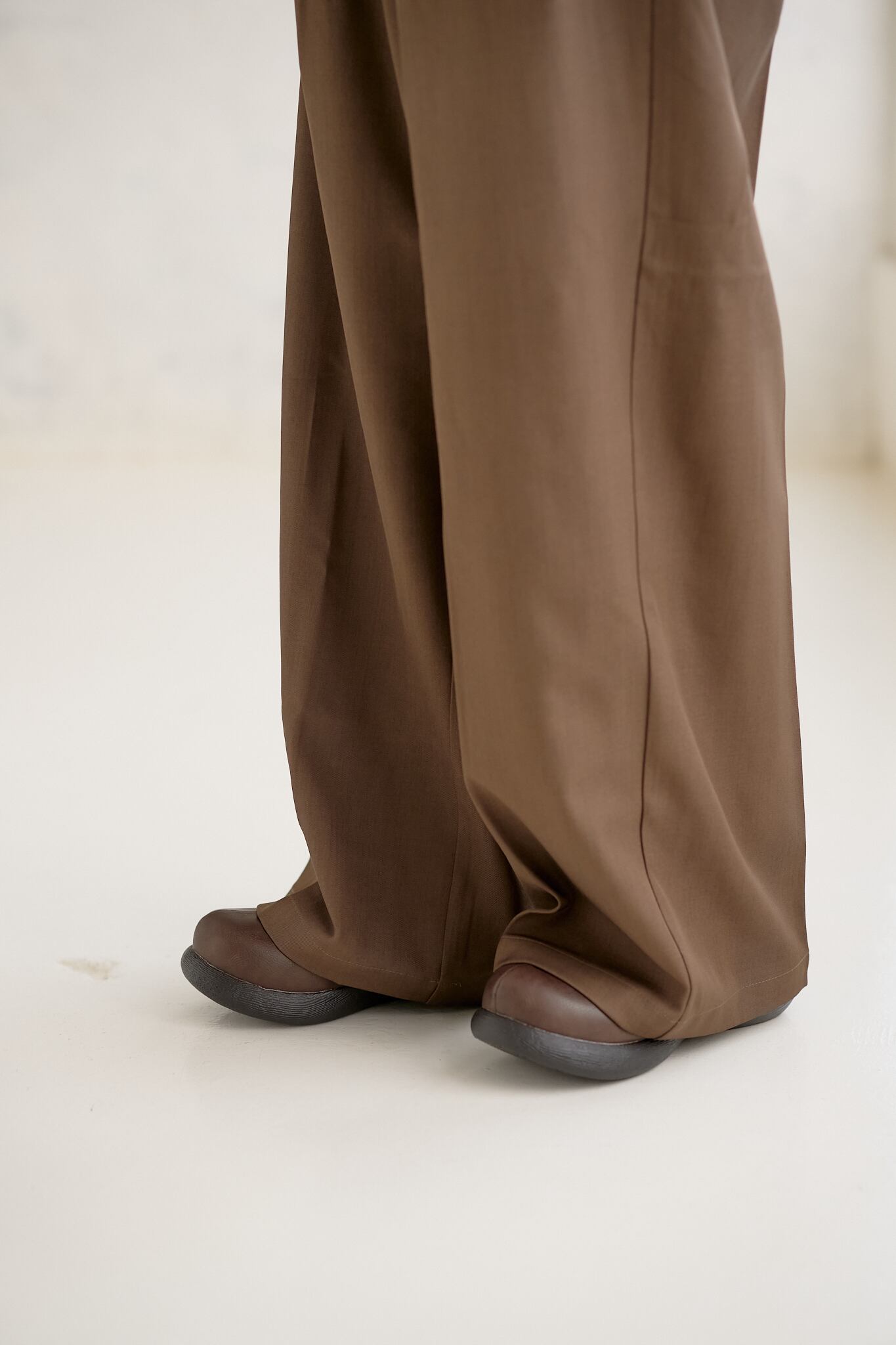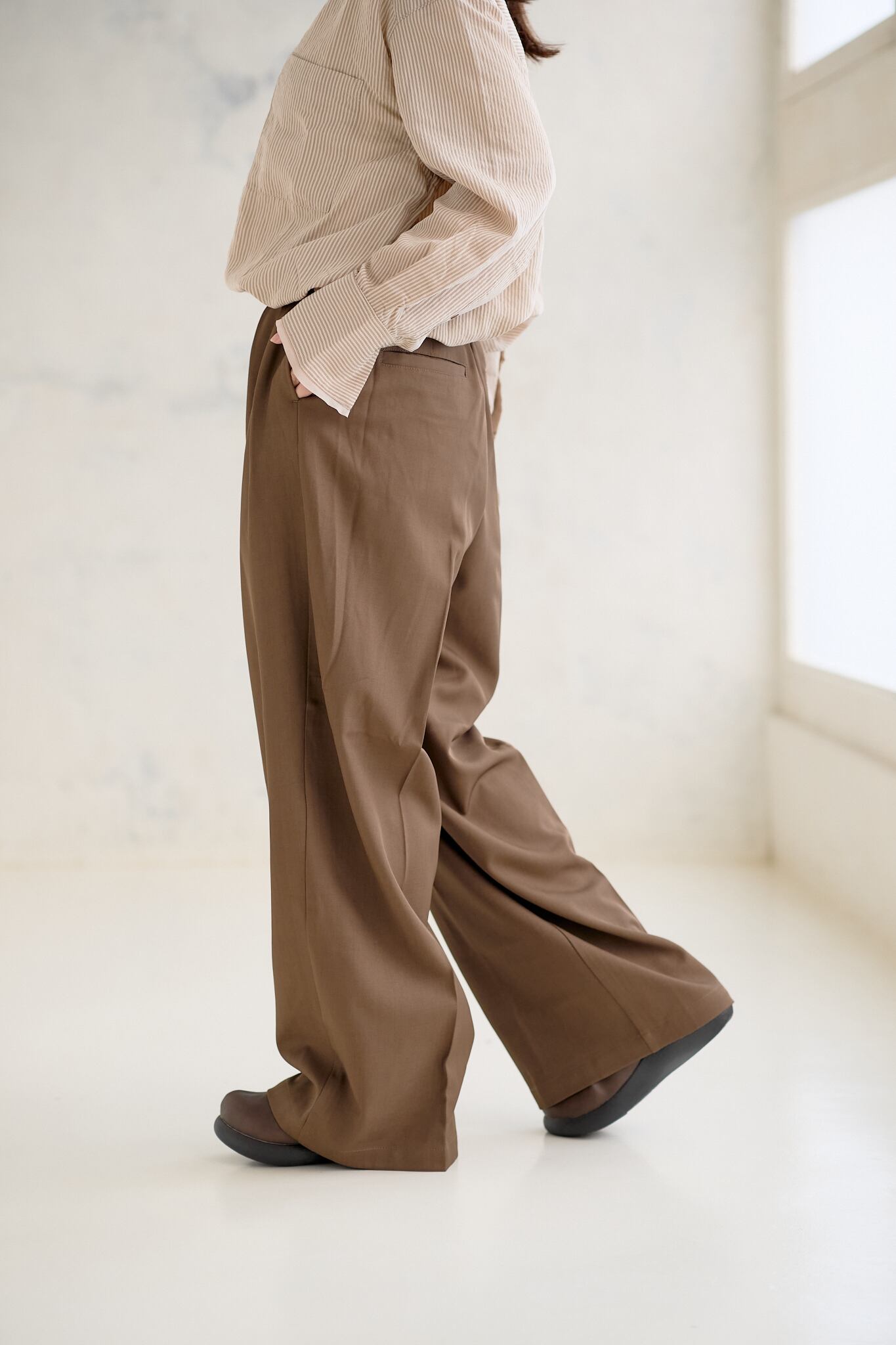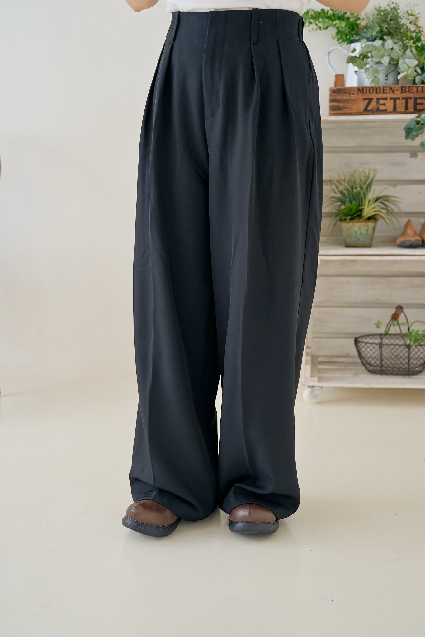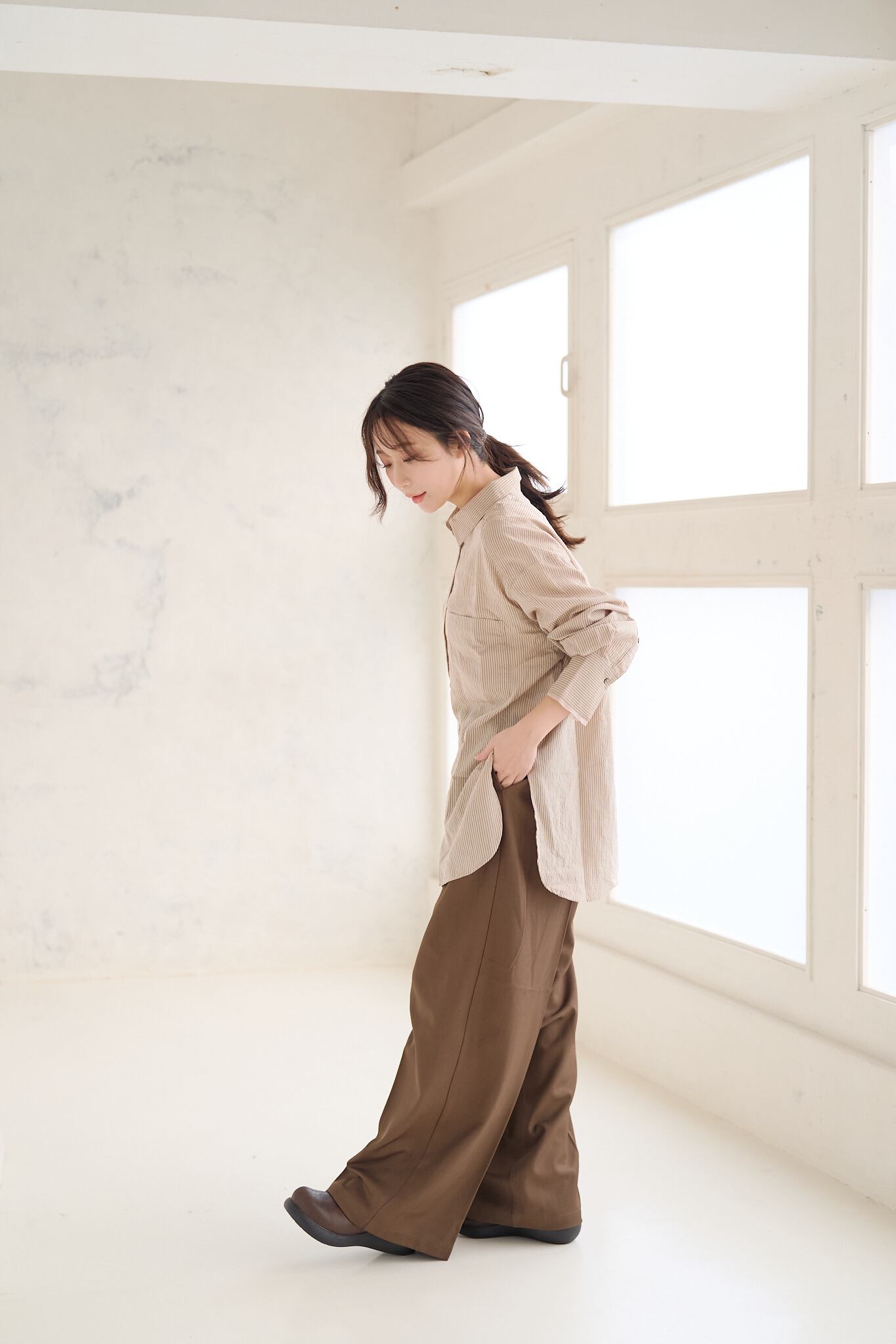 シックな印象を与えるタックが特徴的で、スタイリングにメリハリを与えます。オフィススタイルから休日のお出かけコーデまで、多様なシーンで活躍することでしょう◎