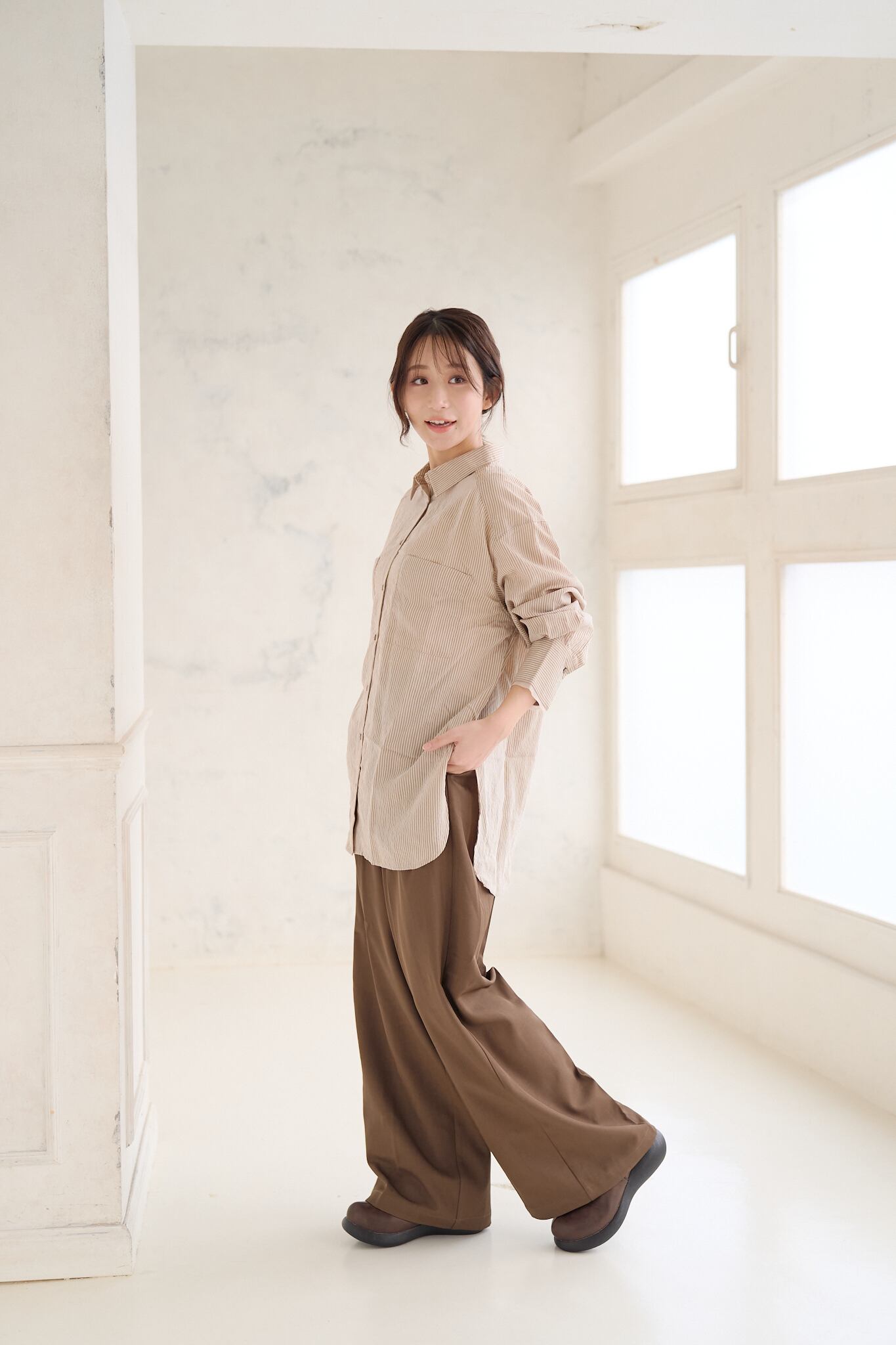 このパンツはデイリーコーディネートからおしゃれなお出かけまで幅広く対応するアイテム。シンプルなトップスやブラウスと合わせることで、洗練されたスタイルを楽しむことができます。