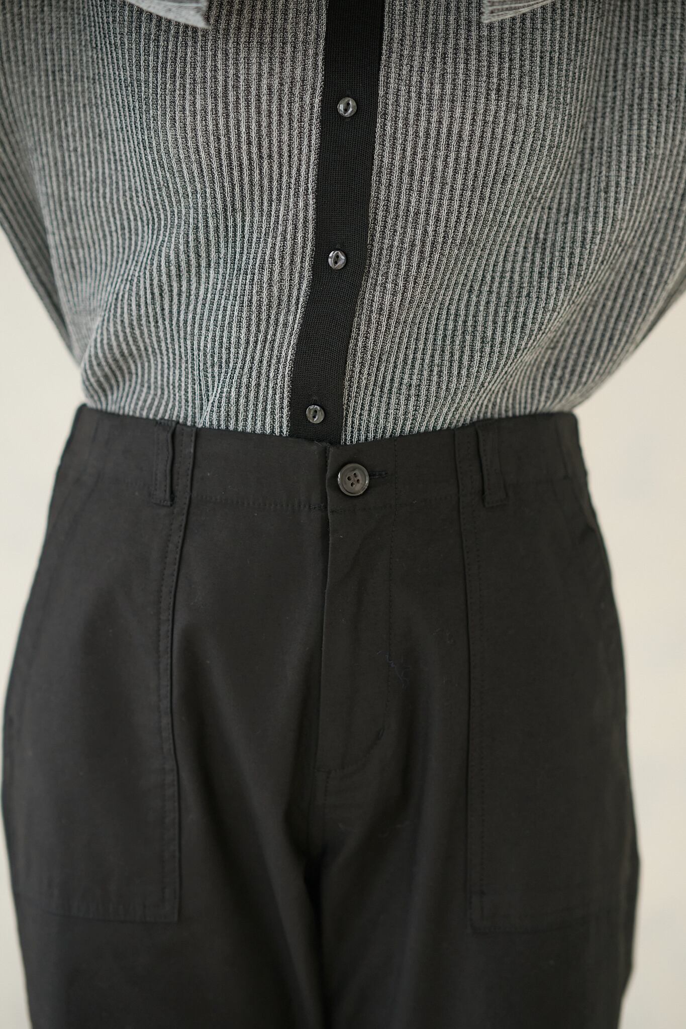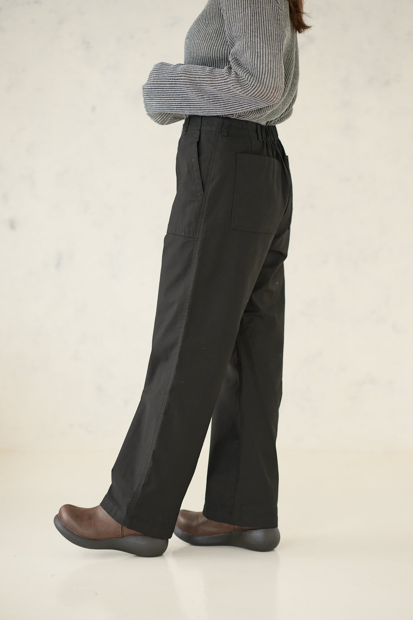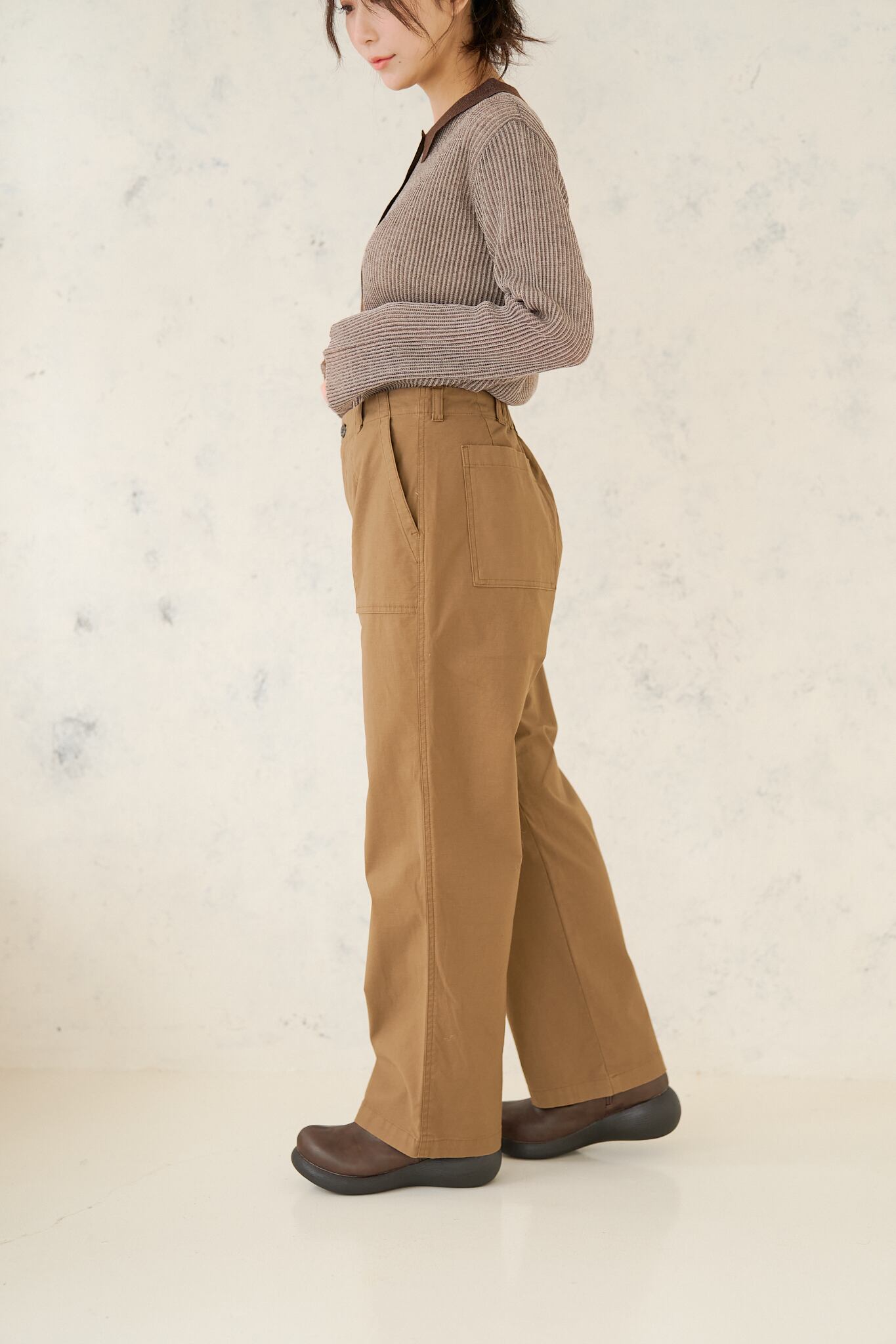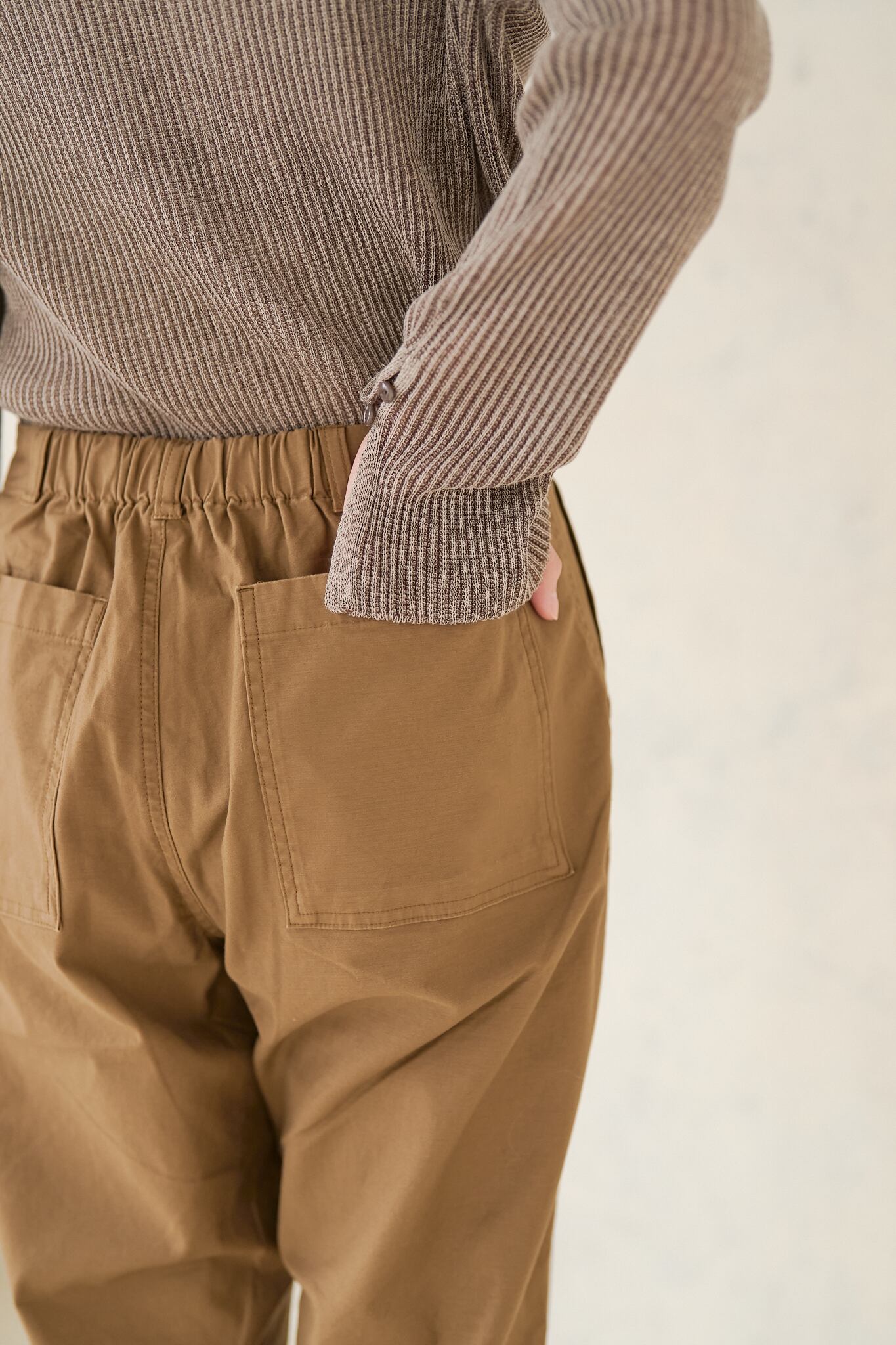 ストレッチの効いたベイカーパンツは、カジュアルな印象を保ちながらもややワークな雰囲気を醸し出す、まさにこなれたアイテムです。シンプルなデザインは、さまざまなスタイルとの相性が良く、デイリー使いはもちろん、特別な日のおしゃれにもぴったりです。